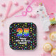 This fun and joyful birthday-themed paper plate design features a large number “25” with a rainbow spectrum gradient inspired pattern, along with the message “Happy 25th Birthday,”, and a custom name. The background features a colourful pattern having many star shapes with different sizes and colours. Paper plates like this might be used when celebrating somebody’s twenty fifth birthday. [~Z0000582]