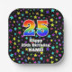 25th Birthday: Fun Stars Pattern and Rainbow “25” Paper Plate