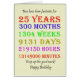 25th birthday card counting down the years, days, months, hours, and minutes. A card to give pause for thought! Leap years have been taken into account!