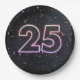 Glowing neon sign on black background with confetti for 25th birthday party.