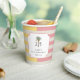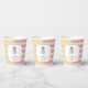 Celebrate a 25th birthday with tropical style — think sunshine, palm trees, and a touch of modern preppy charm. This customizable birthday party paper cup coordinates with a matching invitation and other party supplies. Soft pastel stripes in blush pink, butter yellow, and cream with a minimalist palm tree motif blends casual luxury with sunny tropical charm. The clean typography and modern layout make it perfect for milestone birthdays, destination parties, or elegant resort celebrations. Personalize the template with your info. Cups can serve both hot and cold beverages and are available in several sizes, either with or with our lids.
