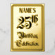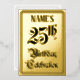 The front of this elaborate twenty-fifth birthday celebration/party foil announcement/invitation card design features the message “25th Birthday Celebration” in elegant script-style text. It also features a customisable name. The back features personalised details about the event, such as the date, time, venue, and any other information that may be important. Ornate, opulent, editable invitations like these might be used to invite guests to a birthday celebration being held in celebration of somebody’s twenty-fifth birthday. [~Z0000596]