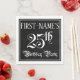 This luxurious and fancy birthday-themed paper napkin design features a personalised name and the message “25th Birthday Party”. The large number “25th” and the words “Birthday Party” are in ornate script-style text. The background is coloured black by default (although it can be customised). Opulent, elaborate paper napkins like this might be useful at a birthday party being held to honour somebody’s twenty fifth birthday. [~Z0000563]