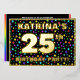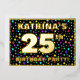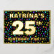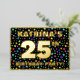 The front of this fun twenty-fifth birthday celebration/party foil invitation card design features an editable name, a large number “25th”, the message “BIRTHDAY PARTY!”, and a border. The background of the front features a vibrant, colourful pattern of star shapes. The back features personalised details about the event, such as the date, time, place, and any other relevant information. Editable invitations like these might be a fun way to invite guests to a birthday party being held to honour somebody’s 25th birthday. [~Z0000600]