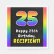 This bold and upbeat birthday-themed paper napkin design features the number “25“ having a colourful rainbow spectrum inspired gradient pattern, along with the message “Happy 25th Birthday,”, and a customisable recipient name. Paper napkins like these might be used when celebrating somebody’s twenty fifth birthday. [~Z0000629]