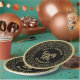 It’s simple to add your name, initials, or monogram to the centre using the provided text templates. This cool design features a gold random number pattern with the milestone number 25 displayed in various sizes and angles for an all-over print. A circle serves as the centre for your text, while black and gold rings adorn the rim.