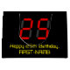 This silly and nerdy birthday gift bag design features a large number "25" having a red seven segment digital display inspired appearance, along with the message "Happy 25th Birthday," and a custom name in geeky yellow text, on a black coloured background. Customised gift bags like this might be used for wrapping presents or gifts being given to somebody who is celebrating their twenty fifth birthday. [~Z0000389]