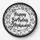 This numeric design has a black and white random number pattern with a black milestone number 25 repeated in varied sizes and angles. There is a white circle in the centre for your text and black-and-white rings around the rim.