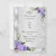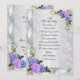 25th anniversary party invitation for parents on white satin-look background with embossed looking flowers. Ribbons, lavender and blue roses in the corner. Template can be used for any special occasion. Simply change the text to suit your needs.this is a printed design with no separate embellishments and therefore does not require extra postage.