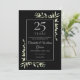 Featuring delicate watercolour leaves that frame your personalised twenty-fifth wedding anniversary celebration information in elegant silver text on a black background. Designed by Thisisnotme©