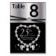 25th Silver Wedding Anniversary Party table cards. DIRECTIONS TO ADD NAMES/NUMBERS TO CARDS - Step 1 add name and number on first card then add to your cart. Step 2 - click on the picture to the left and it will return you back to the card so you can add the second number then add it to your cart - Repeat process until all names and/or numbers have been added. Step 3 - Checkout or continue shopping. ⭐This Product is 100% Customisable. Graphics and text can be deleted, moved, resized, changed around, rotated, etc... ⭐99% of my designs in my store are done in layers. This makes it easy for you to resize and move the graphics and text around so that it will fit each product perfectly. ⭐ (Please be sure to resize or move graphics if needed before ordering) You can also "TRANSFER DESIGN" on other Zazzle products and adjust the design to fit most of Zazzle items. (button is down on the right side of the page) Some of the text graphics have ready to fill in the box(es) or you can Click on the "CUSTOMIZE" button to add, move, delete, resize, background colour or change any of the font or graphics. The design is made with high resolution vector and/or digital graphics for a professional print. ⭐NOTE: (THIS IS A PRINT. All zazzle product designs are "prints" unless otherwise stated under "About This Product" area) The design will be printed EXACTLY like you see it on the screen and on the product...so please make sure when you do your changes on the resizing of any of the graphics or text that it fits in the areas correctly and that your spelling and wording is how you like it to be in size, colour and font. If you have any questions about the "DESIGN ONLY" or need help please contact me at my direct email - siggyscott@comcast.net or visit my store link: http://www.zazzle.com/store/designsbydonnasiggy (Copy and Paste) I'll be happy to help. ⭐ ALL OTHER QUESTIONS (such as the shipping, a refund, the printing is incorrect, or the product itself, etc...) PLEASE CONTACT ZAZZLE OR THE MAKER ⭐DIRECTLY⭐. Thank you for the support and stopping by my store - DesignsbyDonnaSiggy. © Donna Siegrist⭐⭐⭐ ZAZZLE promises 100% satisfaction.