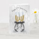 Champagne flutes with black bows on elegant white damask background for couples' 25th wedding anniversary.