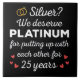 'Silver? We deserve Platinum for putting up with each other for 25 Years' quote for a couple who got married 25 years ago or a couple renewing wedding vows on their silver anniversary.