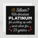 'Silver? We deserve Platinum for putting up with each other for 25 Years' quote for a couple who got married 25 years ago or a couple renewing wedding vows on their silver anniversary.