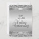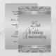 Elaborate silver wedding anniversary invitations for a 25th wedding reception / party. Silver front and back with black text on back giving a classy look to this unique anniversary invite.
