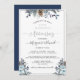 25th Wedding Anniversary, Silver, Navy Blue Floral Invitation