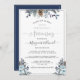 25th Wedding Anniversary, Silver, Navy Blue Floral Invitation