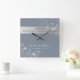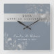 Elegant, modern, adorable, unique dusty blue personalised 25th Wedding anniversary gift wall clock with names, date and faux silver floral lace.