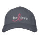 Believe Breast Cancer Ribbon Embroidered Distressed Chino Twill Hat (Scotland Blue)