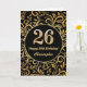 26th Birthday Black and Gold Floral Pattern Card