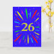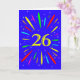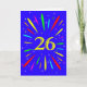 An explosive 26th birthday card! What a wonderful way to send birthday greetings. The number 26 in bright yellow with an explosion of bright colours and stars.