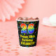 This fun and joyful music themed birthday paper cup design features a large number “26” with a rainbow spectrum gradient inspired pattern, along with the message “Happy 26th Birthday,”, and an editable name. The background features a colourful pattern having music notes and symbols of various colours and sizes. Vibrant, colourful paper cups like this might be fun to have at a birthday celebration/party being held to honour somebody’s 26th birthday. [~Z0000541]