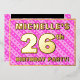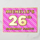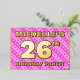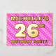 The front of this fun and loving twenty-sixth birthday party/celebration foil invitation card design features a custom name, a large number “26th”, the message “BIRTHDAY PARTY!”, and a border. The background of the front features an upbeat light pink and dark pink striped pattern, with heart shapes. The back features personalised details about the event, such as the date, time, venue, and any other important information. Customised invitations like these might be a fun way to invite attendees/guests to a birthday party being held to celebrate somebody’s 26th birthday. [~Z0000603]