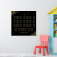 This beautiful wedding seating chart has seating assignments for 27 tables at 10 seats per table or 270 guests. It features a simple yet elegant design with gold text on a black background and lacy decorative faux foil gold filigree in the corners. The title is written in fancy script calligraphy and reads: Please find your table. Stylish and sophisticated!