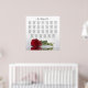 This beautiful 27 table wedding seating chart features a photo of a single long stemmed red rose lying on its side reflecting in water with waves and ripples. The title reads "please find your table" in elegant lacy script calligraphy. There is space for the couples' names and wedding date. This chart has table assignments for 270 guests at the traditional seating arrangement of 10 people per table.