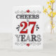 Shades of black and white pair with vibrant red on this birthday card for someone having their 27th birthday. Perfect for any gender and offers a cheerful message.
