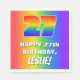 This exciting and fun birthday paper napkin design features a large number “27” with a colourful rainbow spectrum inspired gradient pattern, along with the message “HAPPY 27th BIRTHDAY,”, and a custom recipient name. The background also features a vibrant multicolored rainbow spectrum inspired gradient pattern. Paper napkins like this might be used when celebrating somebody’s twenty seventh birthday. [~Z0000573]