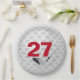 Close-up of white golf ball pattern with a golf club for 27th birthday party.