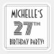 This 1920s/1930s style inspired twenty-seventh birthday celebration square sticker design features a customisable name, a fancy art deco look inspired number “27th”, the message “BIRTHDAY PARTY!”, and a border pattern consisting of lines. Stickers like these might be used when celebrating somebody’s 27th birthday. [~Z0000618]