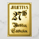 The front of this fancy and elegant twenty-seventh birthday party/celebration foil announcement card design features the message “27th Birthday Celebration” in ornate script-style text. It also has an editable name. The back features personalised details about the event, such as the date, time, venue, and any other important information. Ornate, opulent, customised invitations like these might be used to invite guests to a birthday party being held to honour somebody’s twenty-seventh birthday. [~Z0000596]