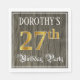 This fancy and elegant birthday paper napkin design features a personalised name and the message “27th Birthday Party”. The large number “27th” has a faux/imitation gold-inspired colouring pattern, and the words “Birthday Party” are in ornate script-style text. The background has an imitation/faux woodgrain-inspired pattern. Ornate, opulent paper napkins like this might be useful at a birthday celebration being held in celebration of somebody’s twenty seventh birthday. [~Z0000566]