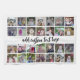 Use 28 SQUARE photos to create a personal photo collage. This modern, clean layout includes a text block in a modern script font to add a family name or a name. The background colour can be changed in the customise area.