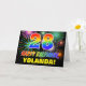 The front of this cheerful, colorful, and fun birthday greeting card design features a large number "28" and the message "HAPPY BIRTHDAY,", both having a rainbow spectrum gradient inspired pattern coloring, along with a bold yellow personalized recipient name. The front also features a multicolored background pattern inspired by the appearance of bursting celebratory fireworks. The inside features a custom birthday greeting message, or could perhaps be cleared and left blank if a message is to be written by hand instead. A colorful personalized birthday card like this might be a fun way to send a message celebrating somebody’s twenty eighth birthday. [~Z0000471]