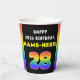 This upbeat and joyful birthday-themed paper cup design features a large number “28“ with a colourful rainbow spectrum inspired gradient pattern, along with the message “HAPPY 28th BIRTHDAY,”, and a customisable recipient name. Birthday themed paper cups like this might be fun to use at a birthday party being held for somebody who is celebrating their twenty eighth birthday. [~Z0000639]