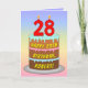 28th Birthday — Fun Cake & Candles, w/ Custom Name Card