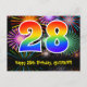 28th Birthday – Fun Fireworks Pattern + Rainbow 28 Postcard