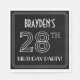 This luxurious Roaring Twenties era inspired art deco look birthday paper napkin design has an editable name, and the message “28TH BIRTHDAY PARTY!”. The number “28TH” has a fancy geometric lined look. Birthday themed paper napkins like these might be used at a birthday party celebrating somebody’s twenty-eighth birthday, or some other 28th event. [~Z0000659]