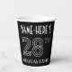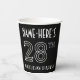 This luxurious 1920s/1930s era inspired art deco style birthday-themed paper cup design has a custom name, plus the message “28TH BIRTHDAY PARTY!”. The number “28TH” has a fancy geometric lined appearance. Stylish paper cups like this might be fun to use at a party in honour of somebody’s twenty-eighth birthday, or some other 28th event. [~Z0000658]