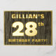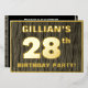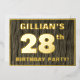The front of this bold twenty-eighth birthday party foil invitation card features an editable name, a large number “28th”, the message “BIRTHDAY PARTY!”, and a border, all in foil. The background of the front features a rustic, yet elegant, faux wood grain look inspired pattern. The back features personalised details about the event, such as the date, time, location/venue, and any other information that may be useful. Editable invitations like these might be used to invite attendees/guests to a birthday gathering/party being held in celebration of somebody’s 28th birthday. [~Z0000598]