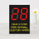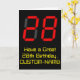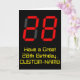 The front of this silly and geeky birthday greeting card design features a large number "28" having a red seven segment digital display style appearance, along with the message "Have a Great 28th Birthday," and a custom name, on a black coloured background. The inside features a customisable birthday greeting message, or could perhaps be cleared and left blank if a message is to be written by hand instead. A personalised birthday card like this might be a fun way to acknowledge somebody’s twenty eighth birthday. [~Z0000386]