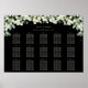 A black winter wedding seating chart featuring hand painted snowberries and eucalyptus. The template text is set for 15 tables of 10 - all text is fully editable. Alternative layouts and coordinating items are available in my store.