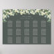 A dark grey green winter wedding seating chart featuring hand painted snowberries and eucalyptus. The template text is set for 15 tables of 10 - all text is fully editable. Alternative layouts and coordinating items are available in my store.