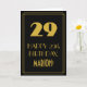 This vintage/retro look and Roaring Twenties era inspired birthday greeting card design features a large art deco style inspired number "29", the message "HAPPY 29th BIRTHDAY,", a custom name, and a border pattern consisting of thin lines on the front. The front has a black-coloured background. The inside has a personalised birthday greeting message, or could perhaps be cleared and left blank if a message is to be written by hand instead. An editable birthday greeting card like this might be used to celebrate somebody’s twenty-ninth birthday. [~Z0000499]