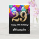 29th Birthday Black and Gold Colourful Balloons Birthday Card. For further customisation, please click the "Customise it" button and use our design tool to modify this template.