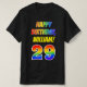 The front of this bold, fun, and vibrant birthday-themed shirt design features a large number "29" and the message "HAPPY BIRTHDAY,", both coloured with a rainbow spectrum gradient inspired pattern, along with a bold yellow customisable name. Exciting birthday themed shirts like this might be fun for the attendees at somebody’s twenty ninth birthday celebration and party to wear. [~Z0000473]