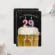 Number 29 candles in mug of beer with colourful confetti on black for 29th birthday party invite.